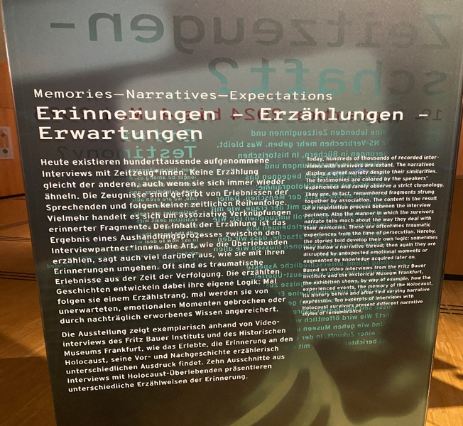 Ein zentraler Punkt der Ausstellung war die Vielschichtigkeit der Erinnerungen an die NS-Zeit. Wie auf einer Informationstafel erklärt wurde, existieren heute unzählige Interviews mit Holocaust-Überlebenden. Keine Erzählung gleicht der anderen, denn Erinnerungen sind geprägt von persönlichen Erfahrungen und emotionalen Momenten. Oft sind sie fragmentiert und werden im Laufe der Zeit durch neues Wissen ergänzt.